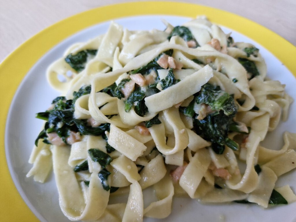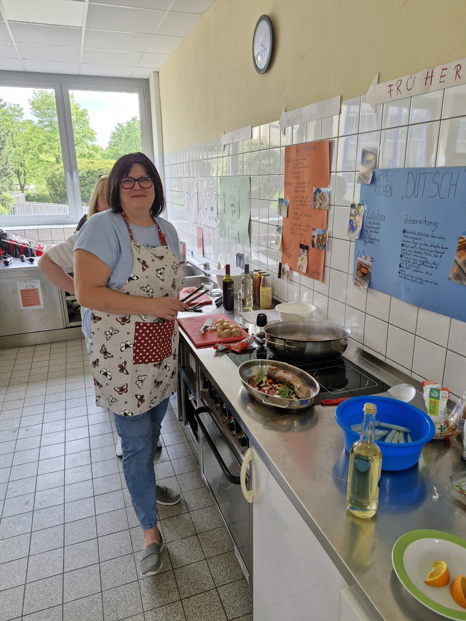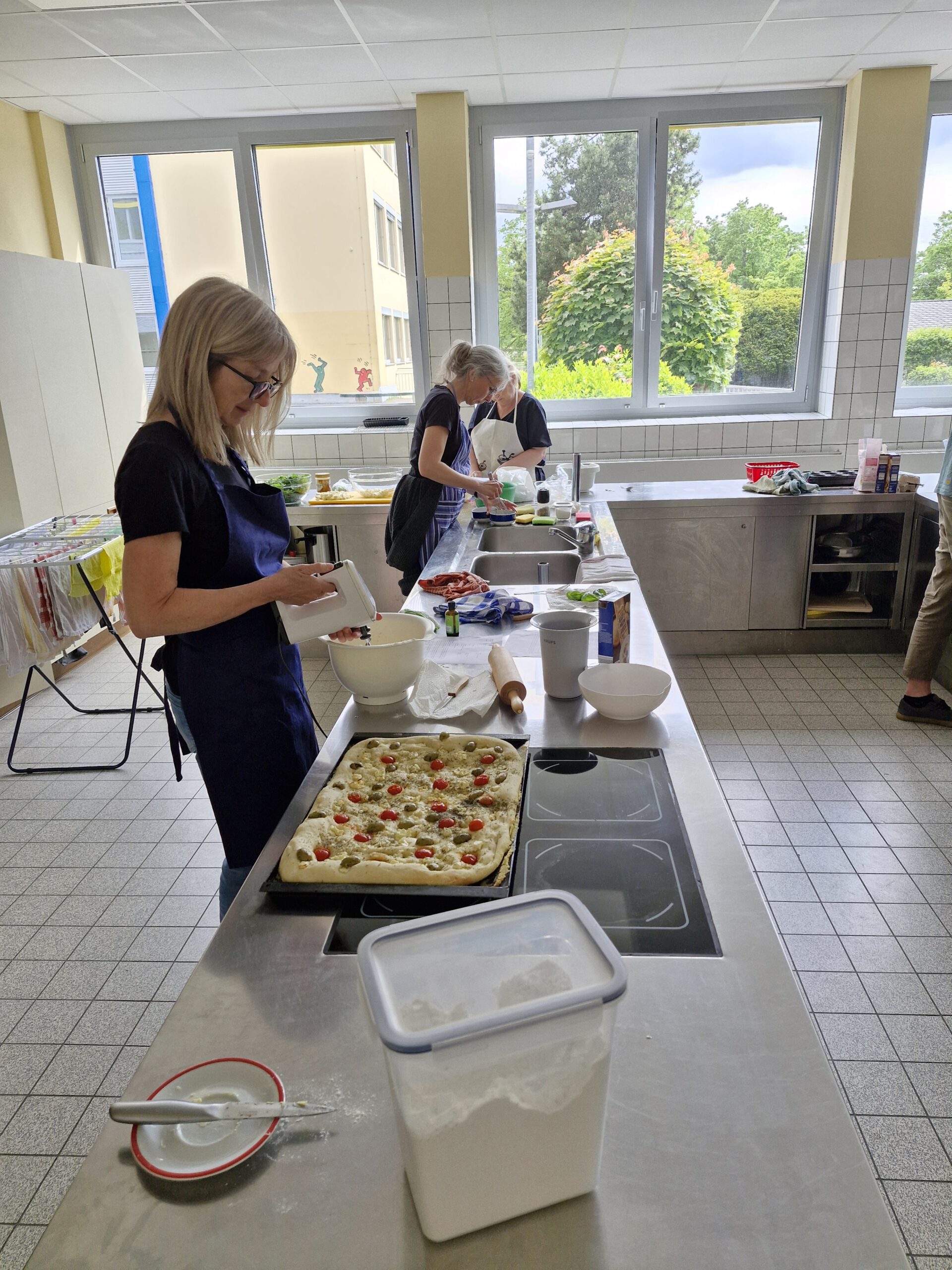 Unter diesem Aspekt trafen sich die Kursteilnehmenden zu einem Kochkurs rund um das Thema „Frühlingsküche in Italien“ und erarbeiteten dabei regionale Unterschiede mit landestypischen Zutaten und Aromen. Am Samstag, 17. Mai 2025 wurde also die Schulküche der Realschule plus „Hoher Westerwald“ zur Cucina Italiana. Die Teilnehmerinnen und Teilnehmer wurden vom Kursleiter kurz in das Thema eingeführt und schon begann die Arbeit in mehreren Kleingruppen. Und ganz in italiensicher Manier hatte sich Kursleiter Patrick George verspätet… Also mit einer kurzen Verzögerung und dem Gefühl italienischen Chaos starteten alle gut gelaunt unmittelbar in die Arbeit.