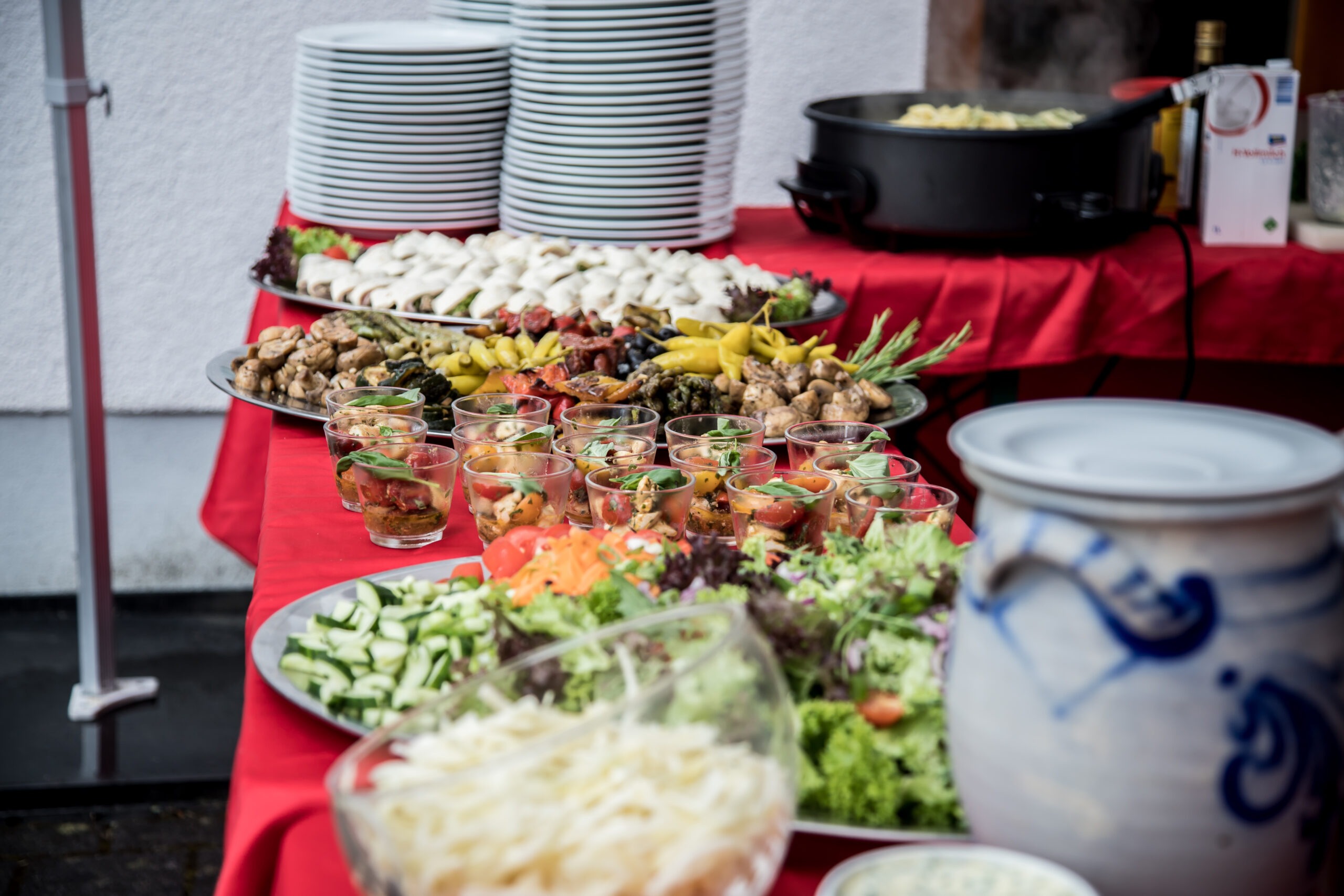 Und schon war alles wieder in Vorbereitungen – denn das Abendbuffet sollte ja auch nicht zu lange auf sich warten lassen. Und bei der Auswahl gab es natürlich noch einiges zu tun… Es sollte ein locker-leichtes und entspanntes BBQ-Buffet geben. Für jeden was dabei, nicht zu exotisch, halt bodenständig, kreativ und lecker…
